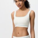 Детали ткани: Тело: 89% Хлопок, 11% эластан/ Подкладка: 91% Хлопок, 9% Эластан/ Низ: 80% Хлопок, 16% эластан, 4% Полиэстер/ Обработанная связующим часть: 81% Хлопок, 11% эластан, 8% Полиэстер/ Чашечка (внутренняя подкладка): 100% Инструкция по стирке полиэстера: Машинная стирка при температуре до 40 градусов, щадящий режим, не подвергать химической чистке, не подходит для сушки в стиральной машине.