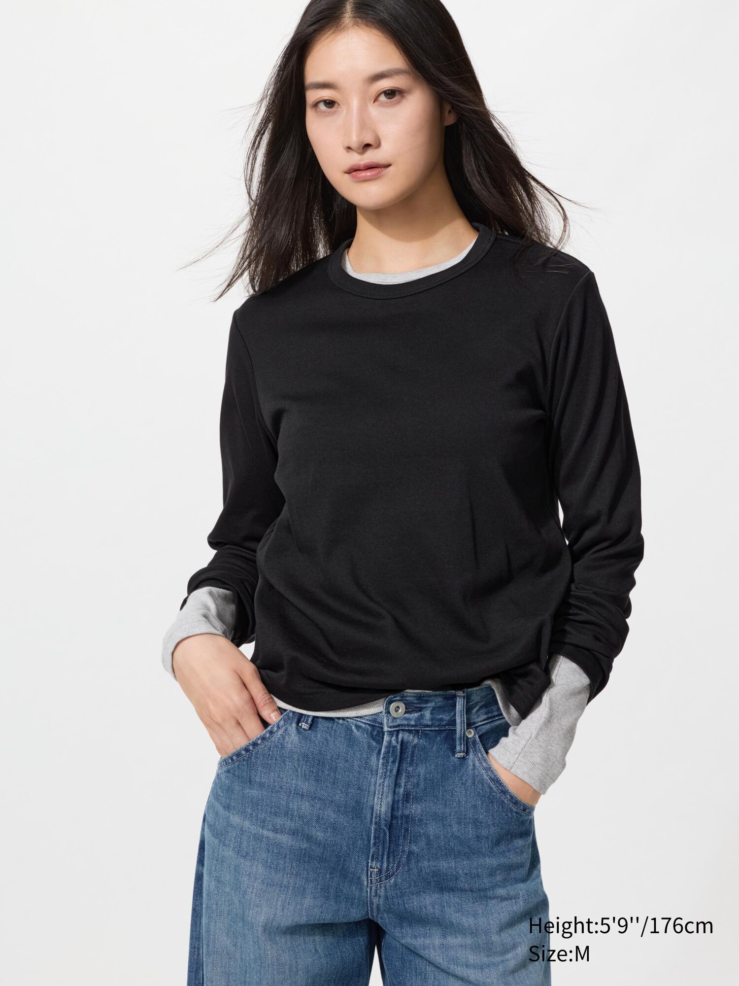 Гладкая хлопковая футболка-стрейч (с длинным рукавом)