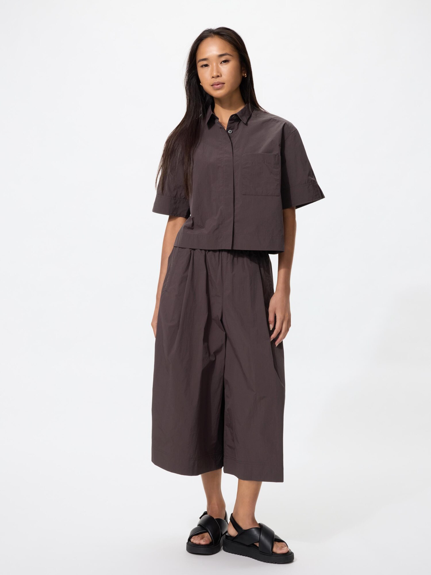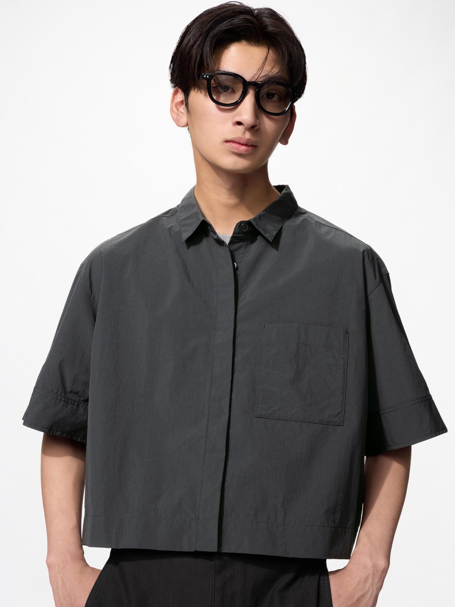 Нейлоновая короткая рубашка-бокс с рукавом до локтя