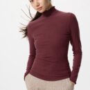 Очень теплая футболка с высоким воротом в рубчик из смеси кашемира Heattech