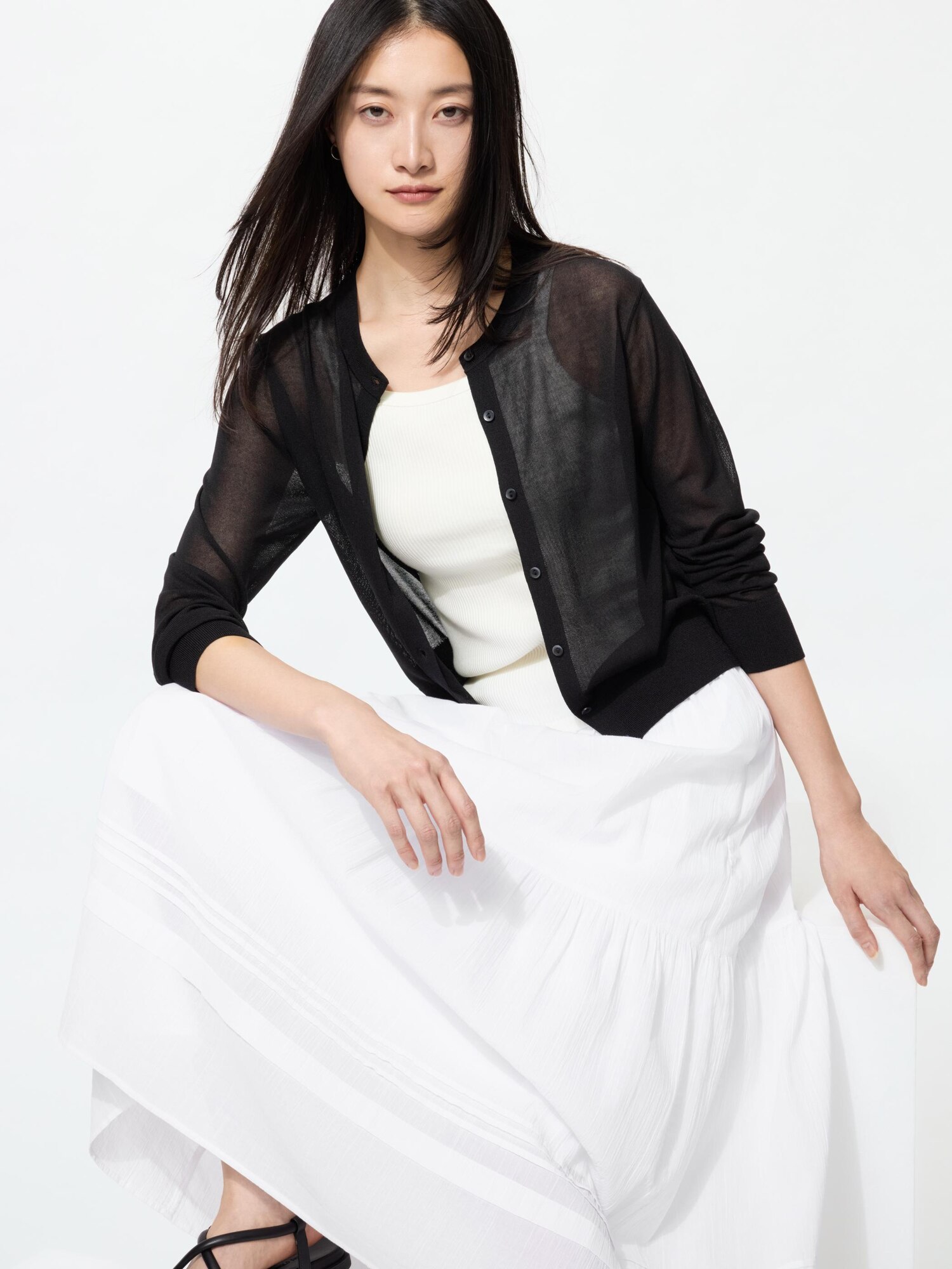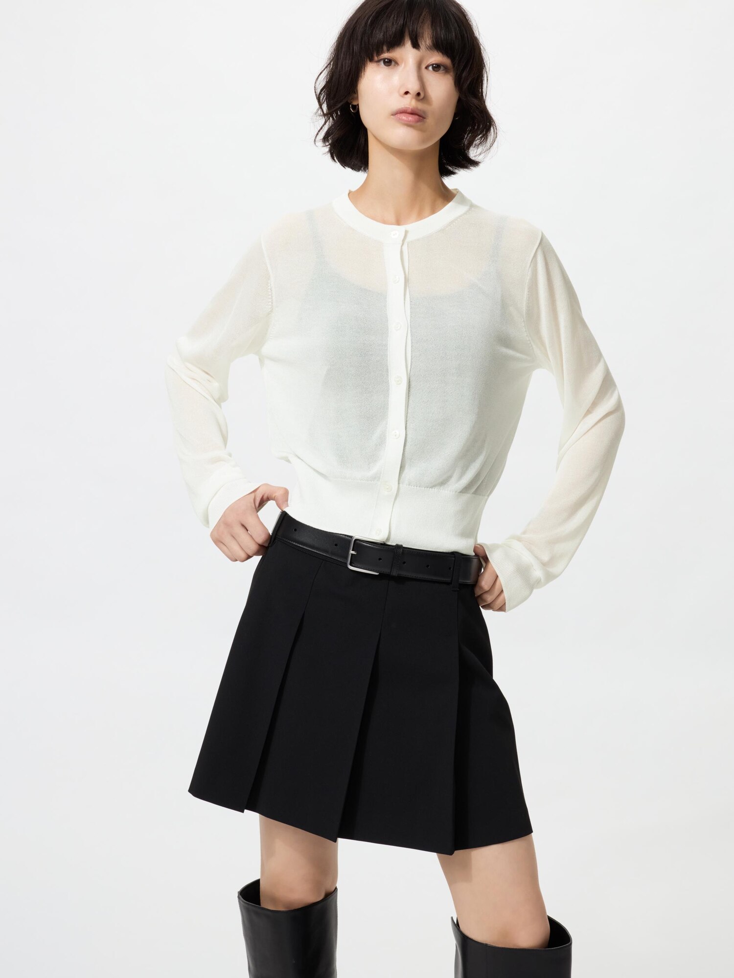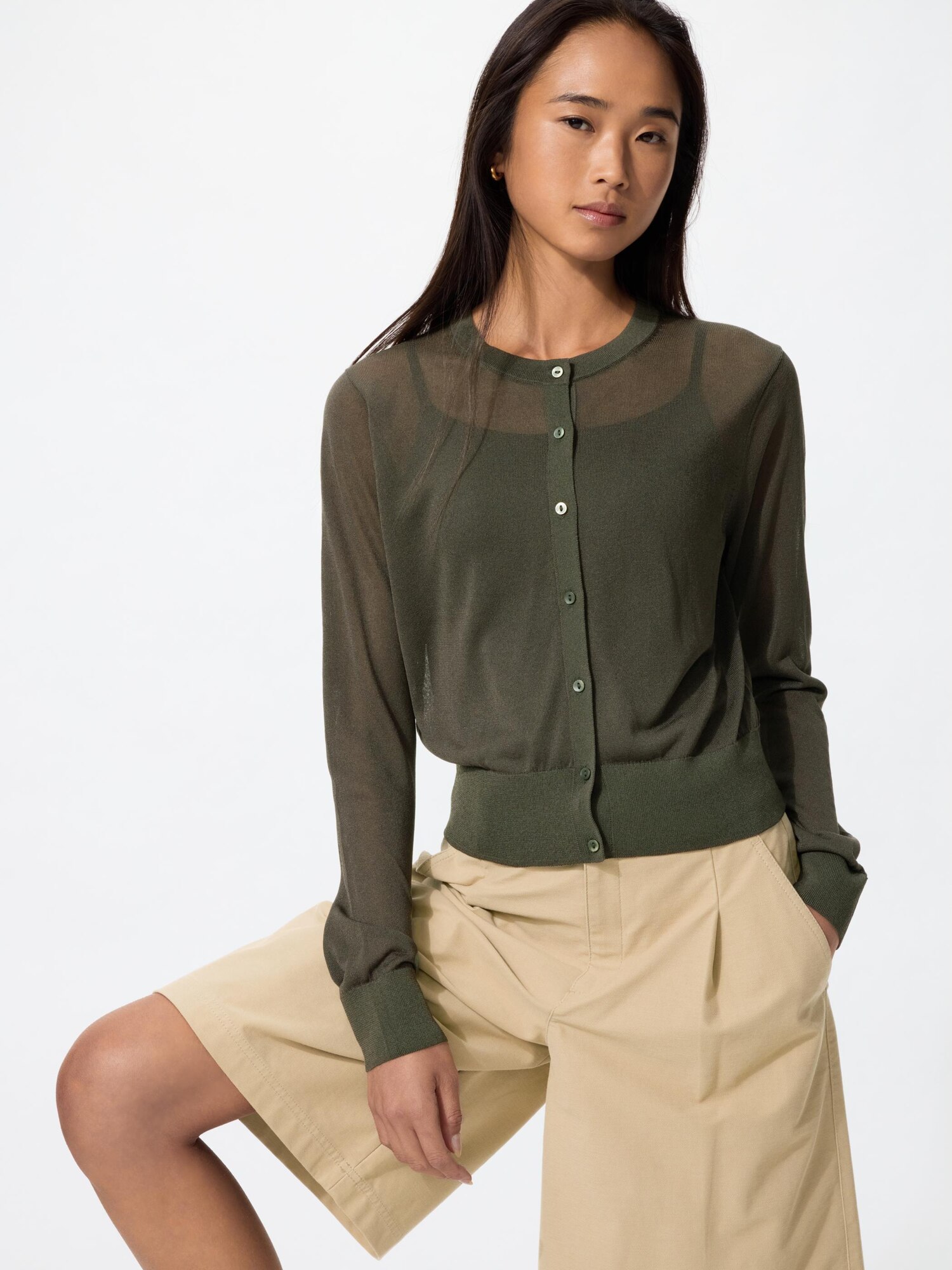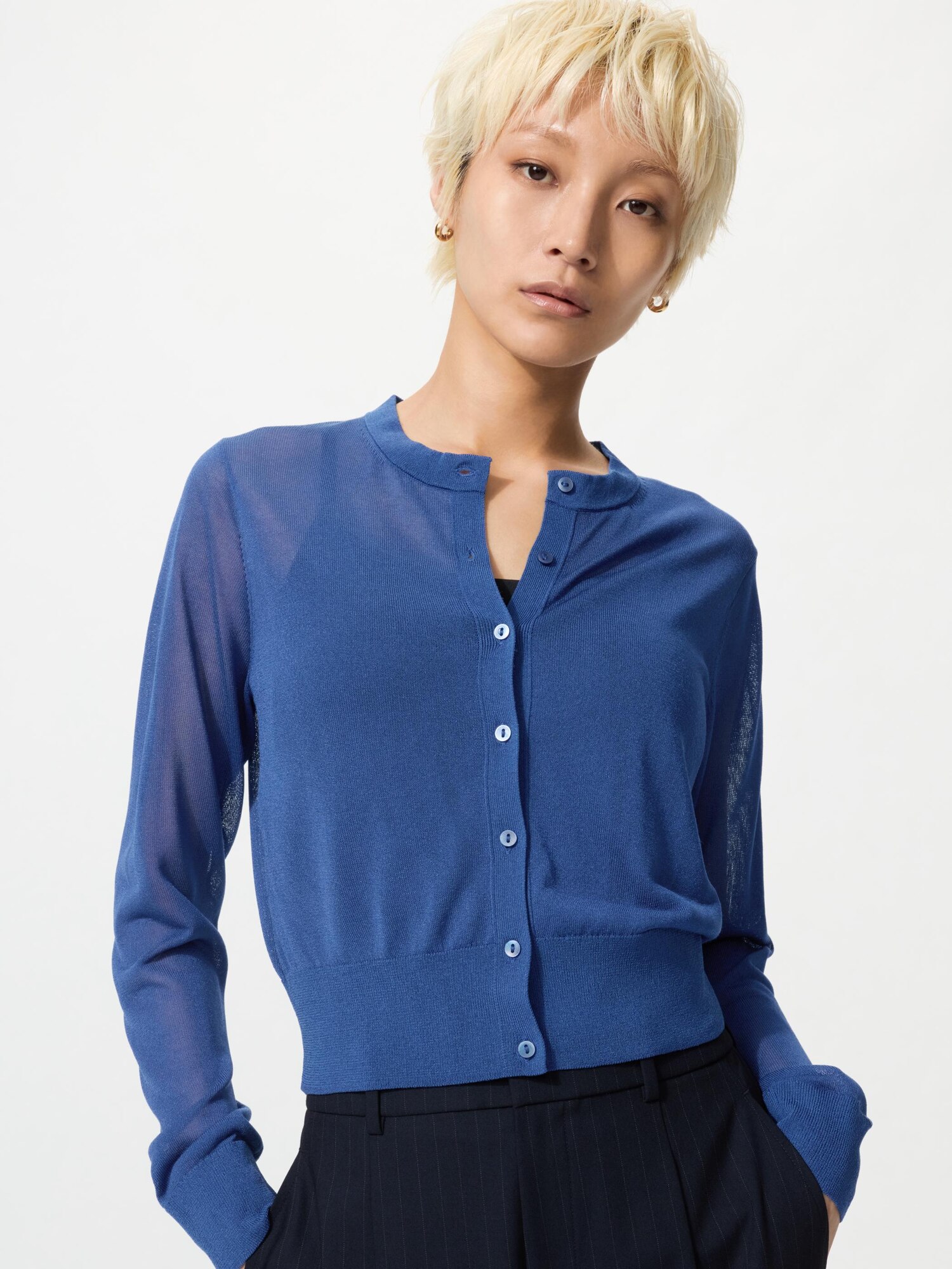 Прозрачный короткий кардиган с круглым вырезом