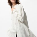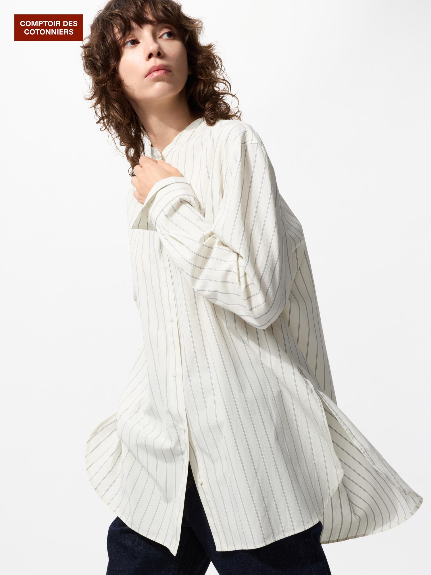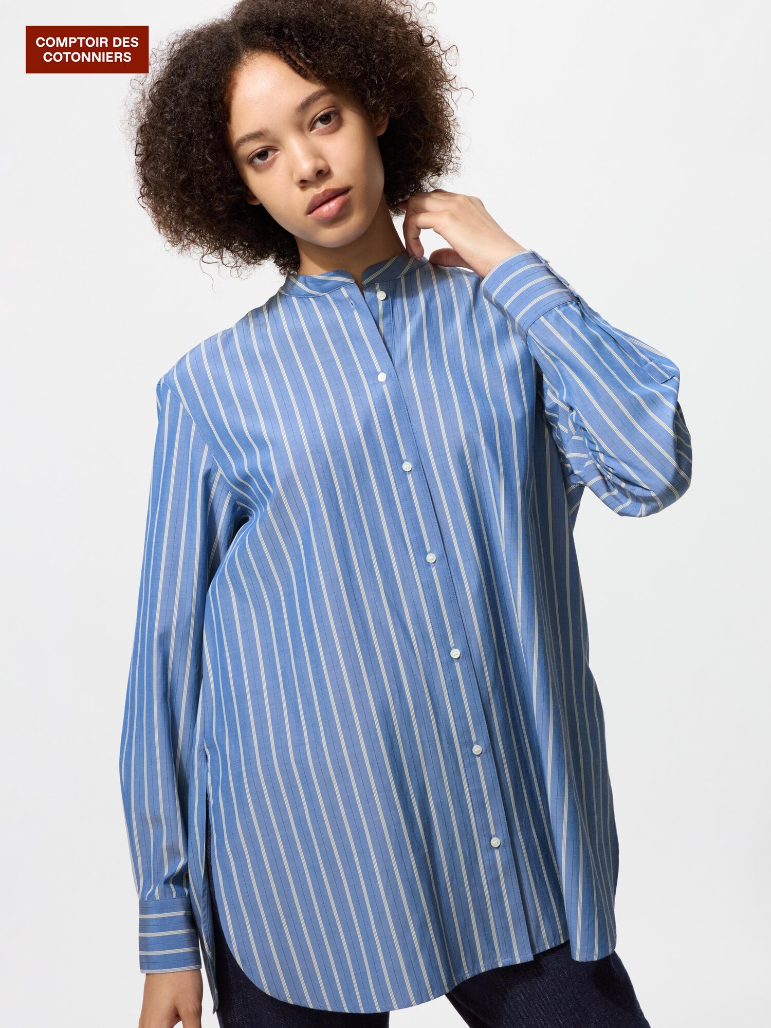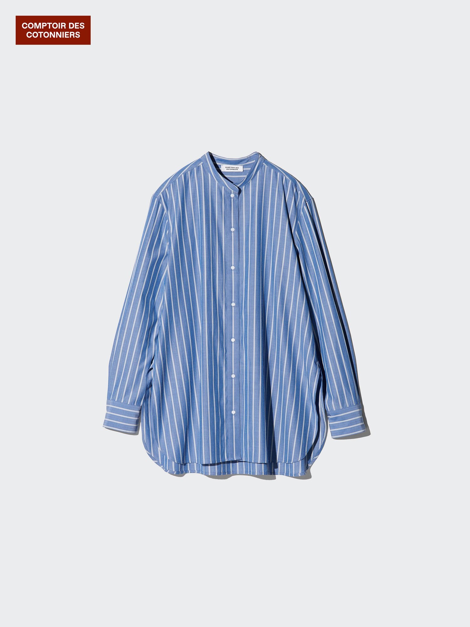 Рубашка с воротником-стойкой из смесового хлопка