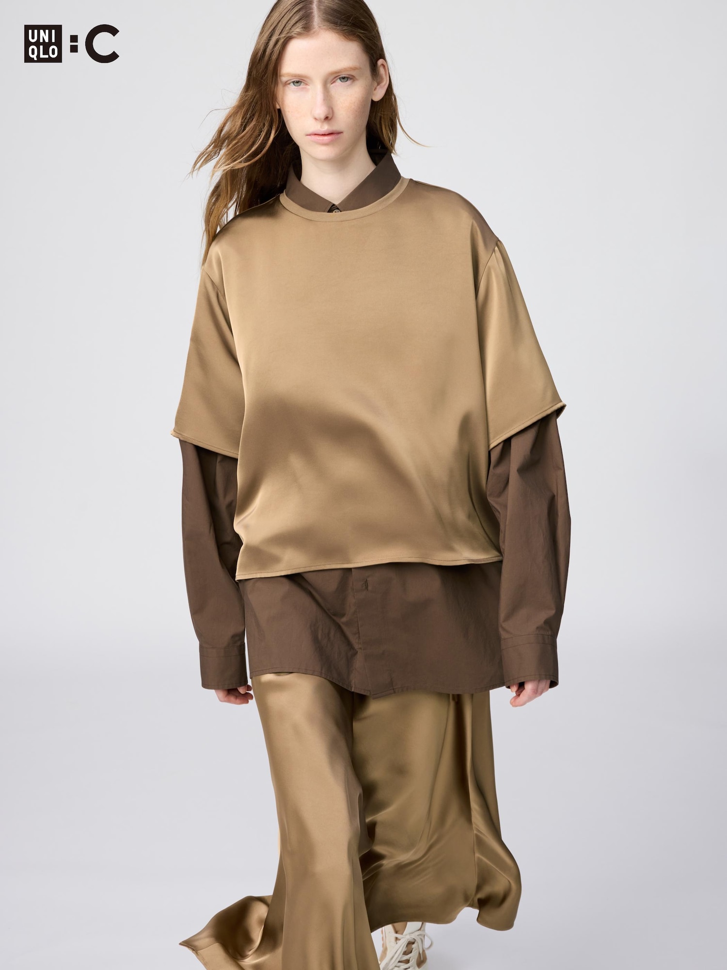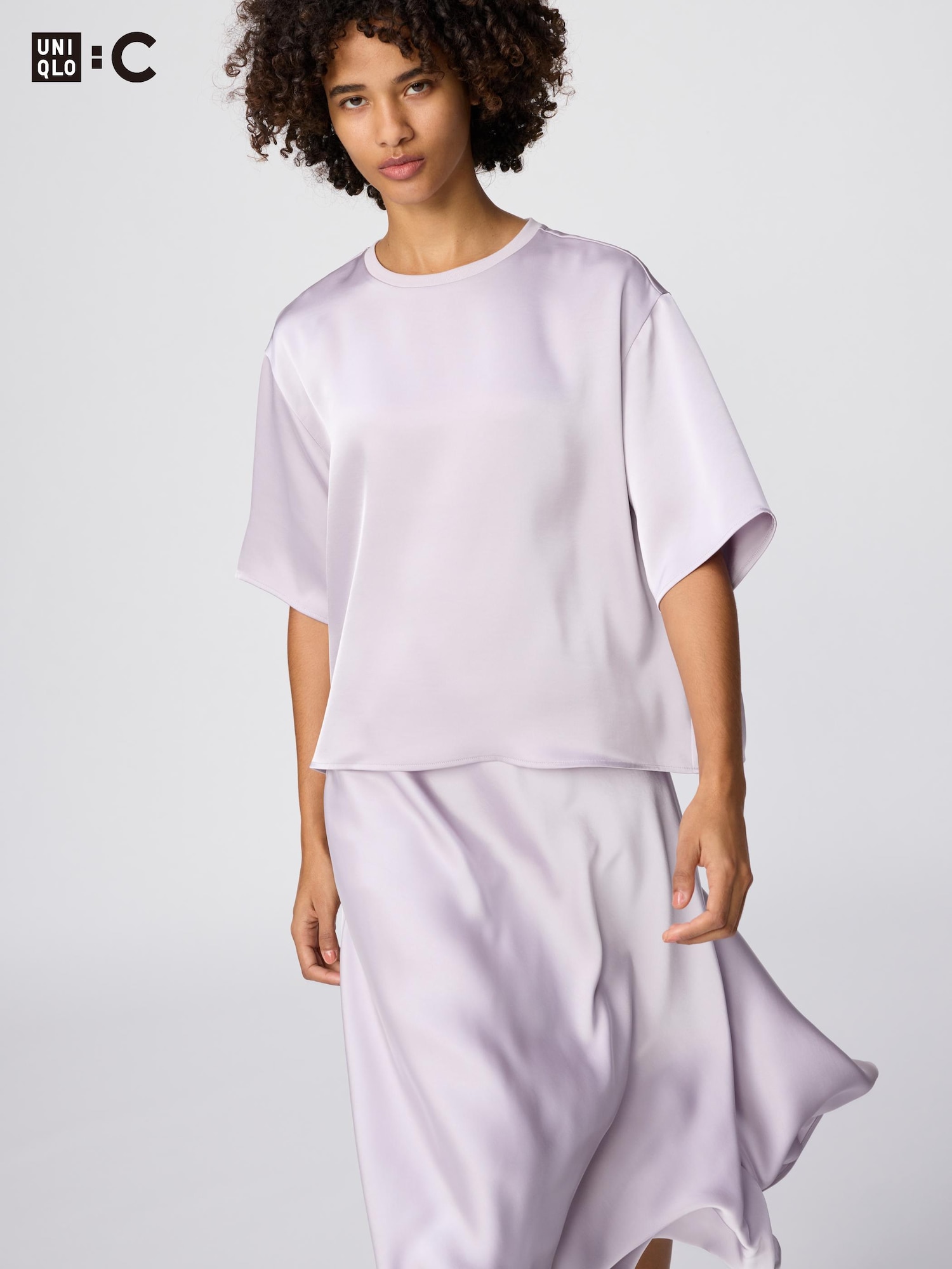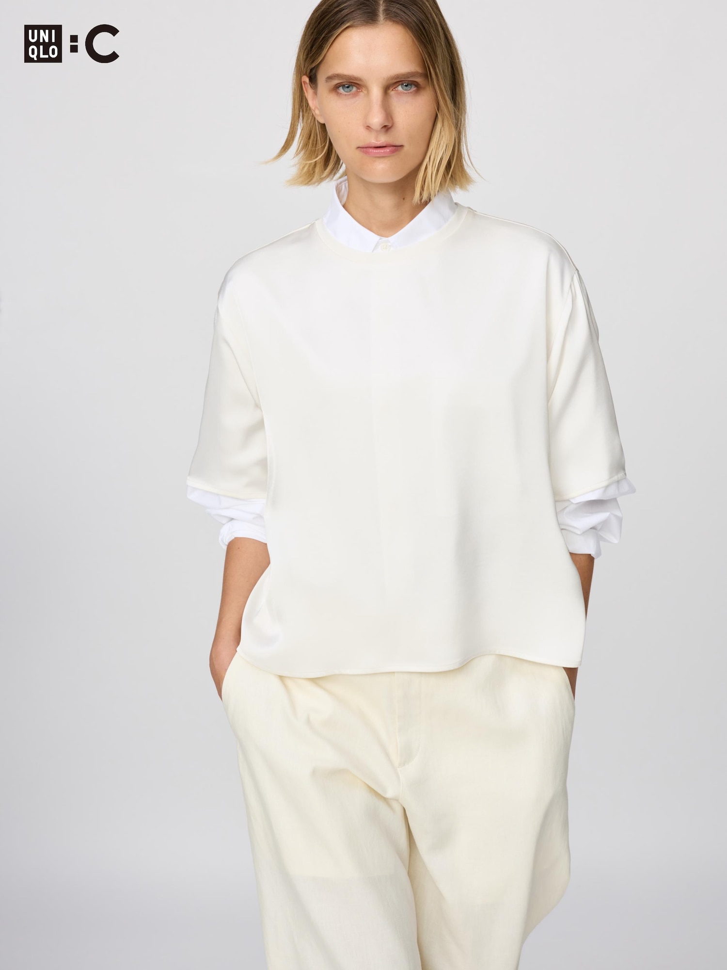 Сатиновая блузка оверсайз с короткими рукавами (3/4)