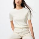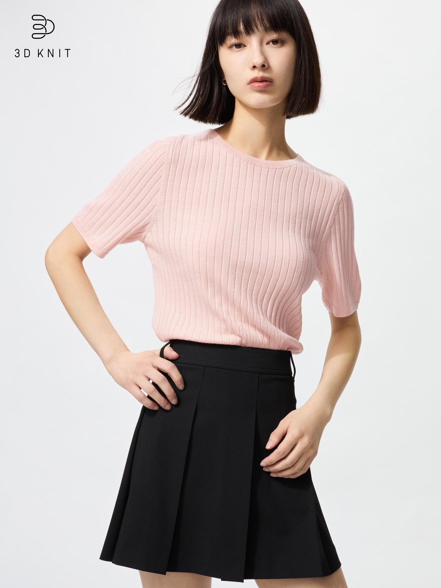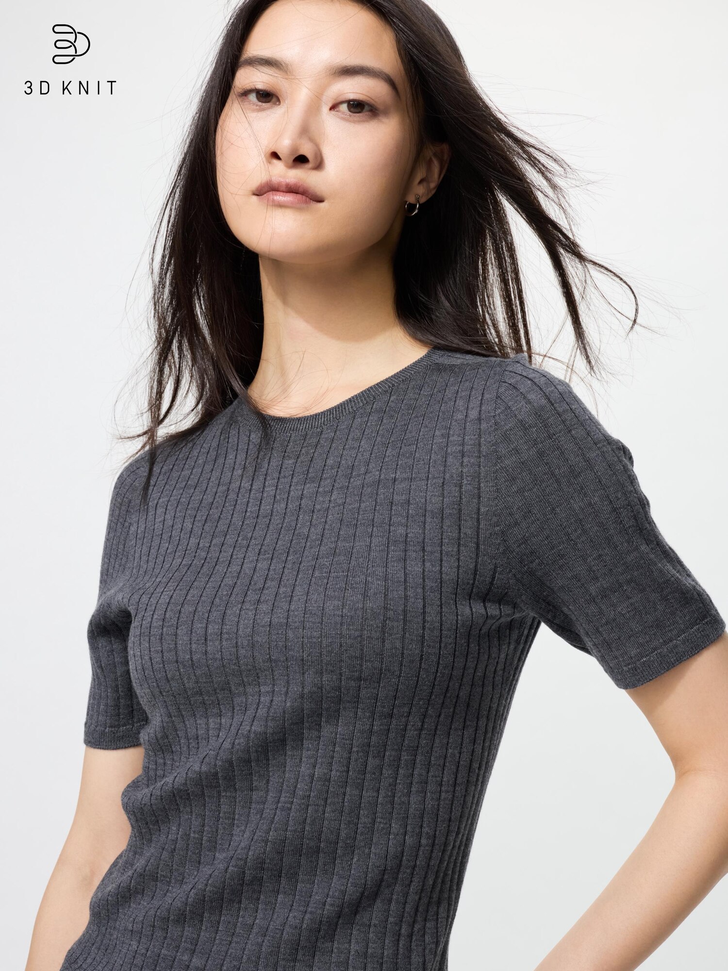 Свитер с круглым вырезом из 3D мериносовой шерсти в рубчик / рукава длиной 5 минут