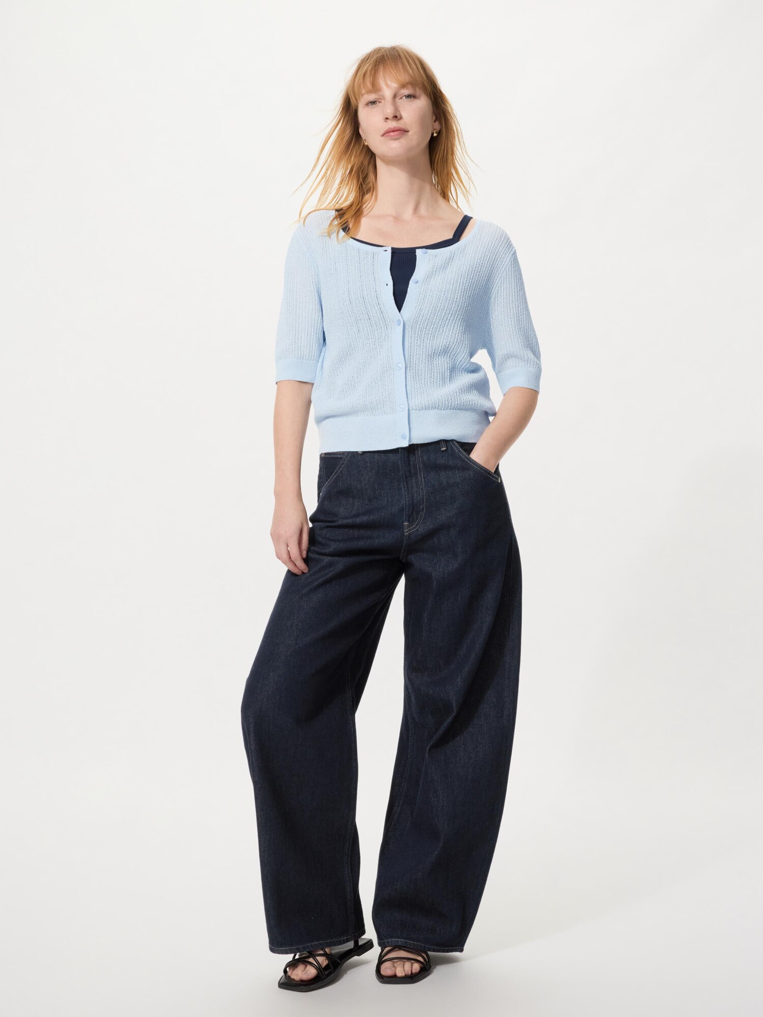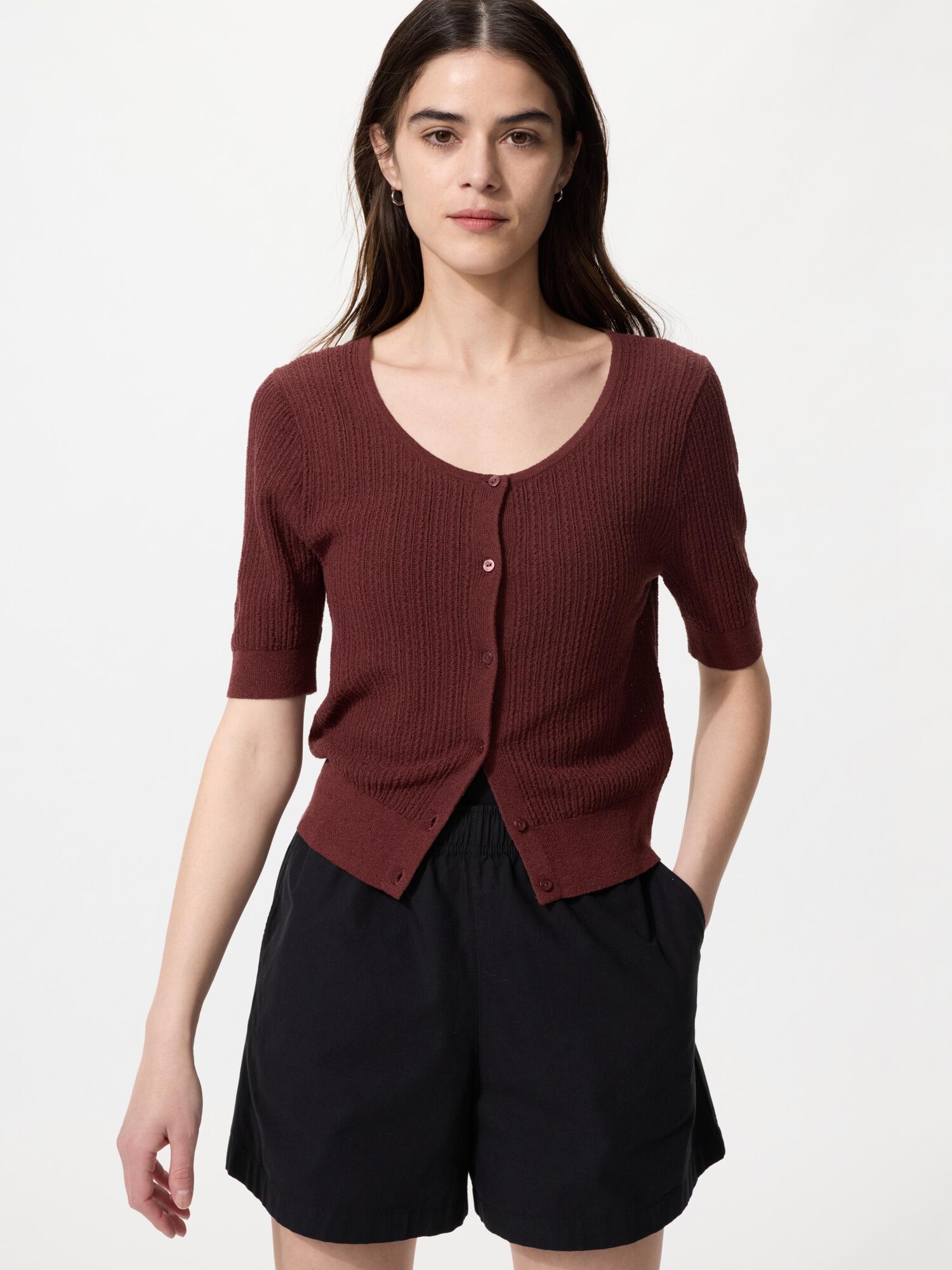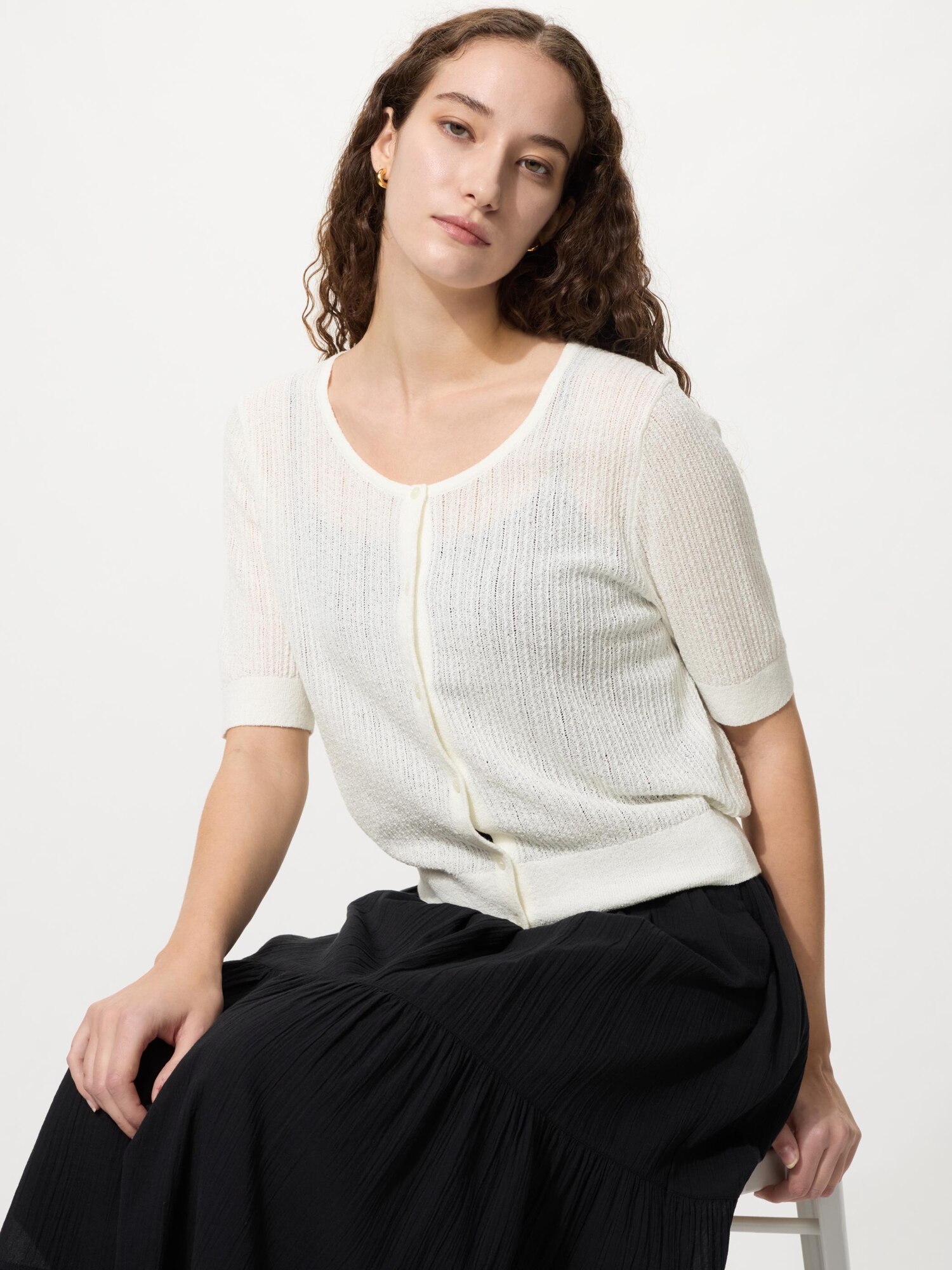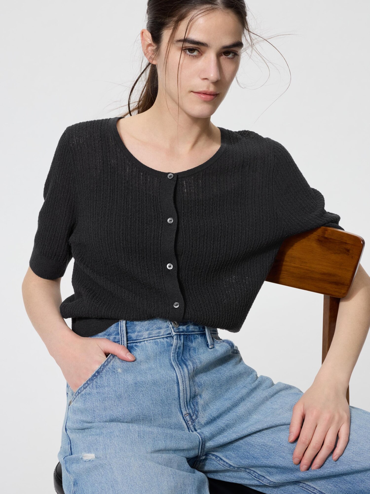 Свободный кардиган с круглым вырезом (короткий рукав)