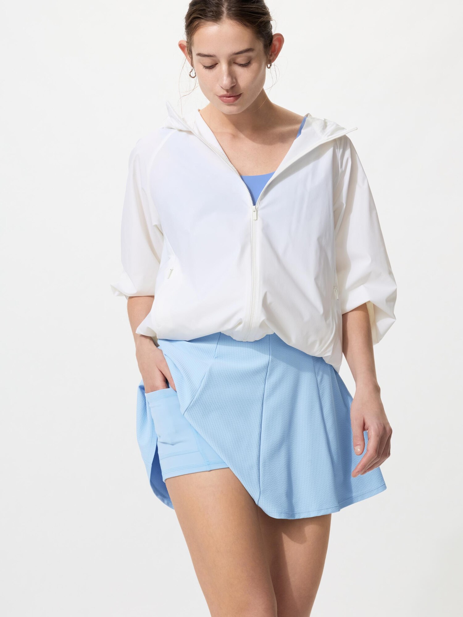 Основная ткань: 92% полиэстер (переработанный), 8% полиуретан / Подкладка: 77% полиэстер (переработанный), 23% полиуретан / Внутренняя ткань: 93% хлопок, 7% полиуретан