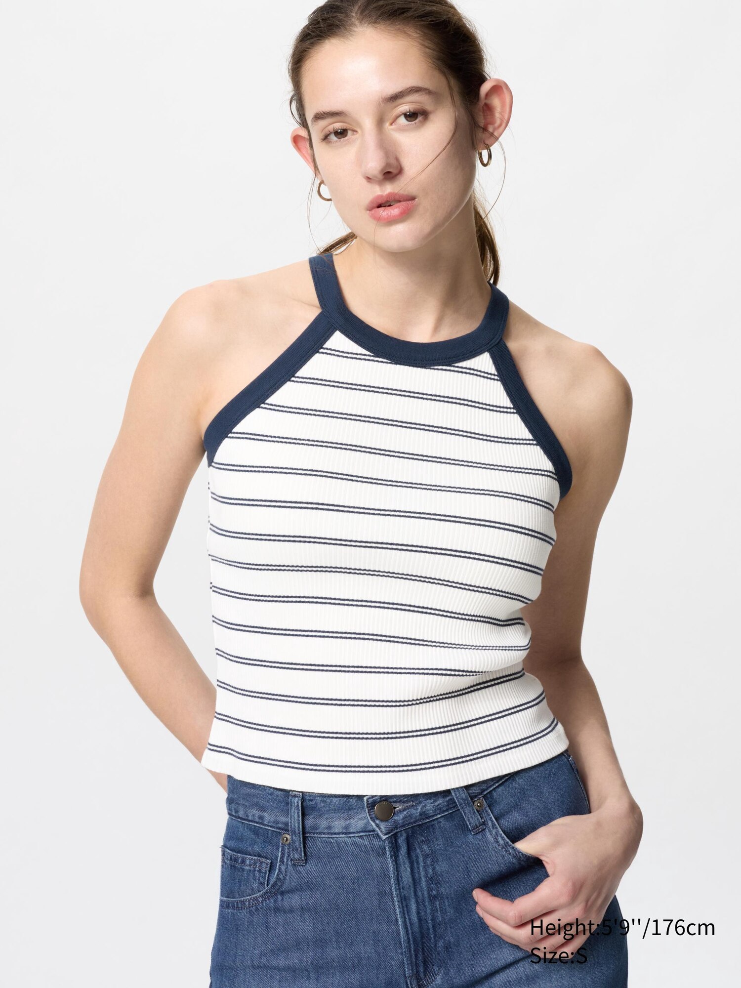 Топ-бюстгальтер без рукавов с бретелькой на шее (в полоску)