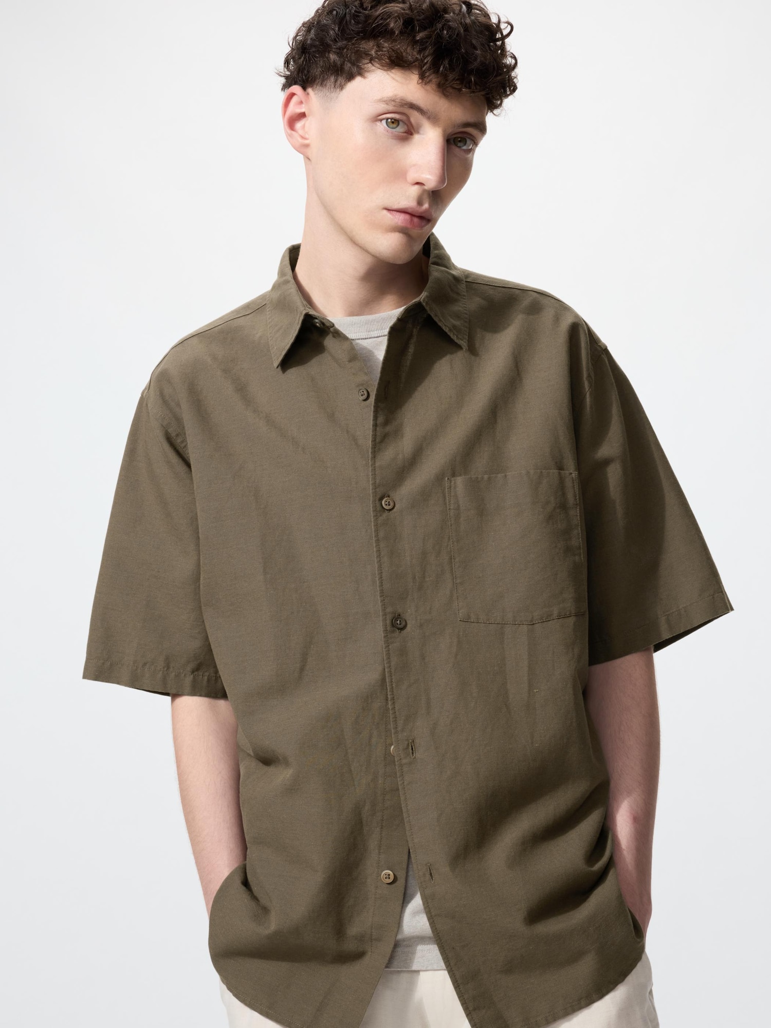 Хлопково-льняная рубашка (короткий рукав)