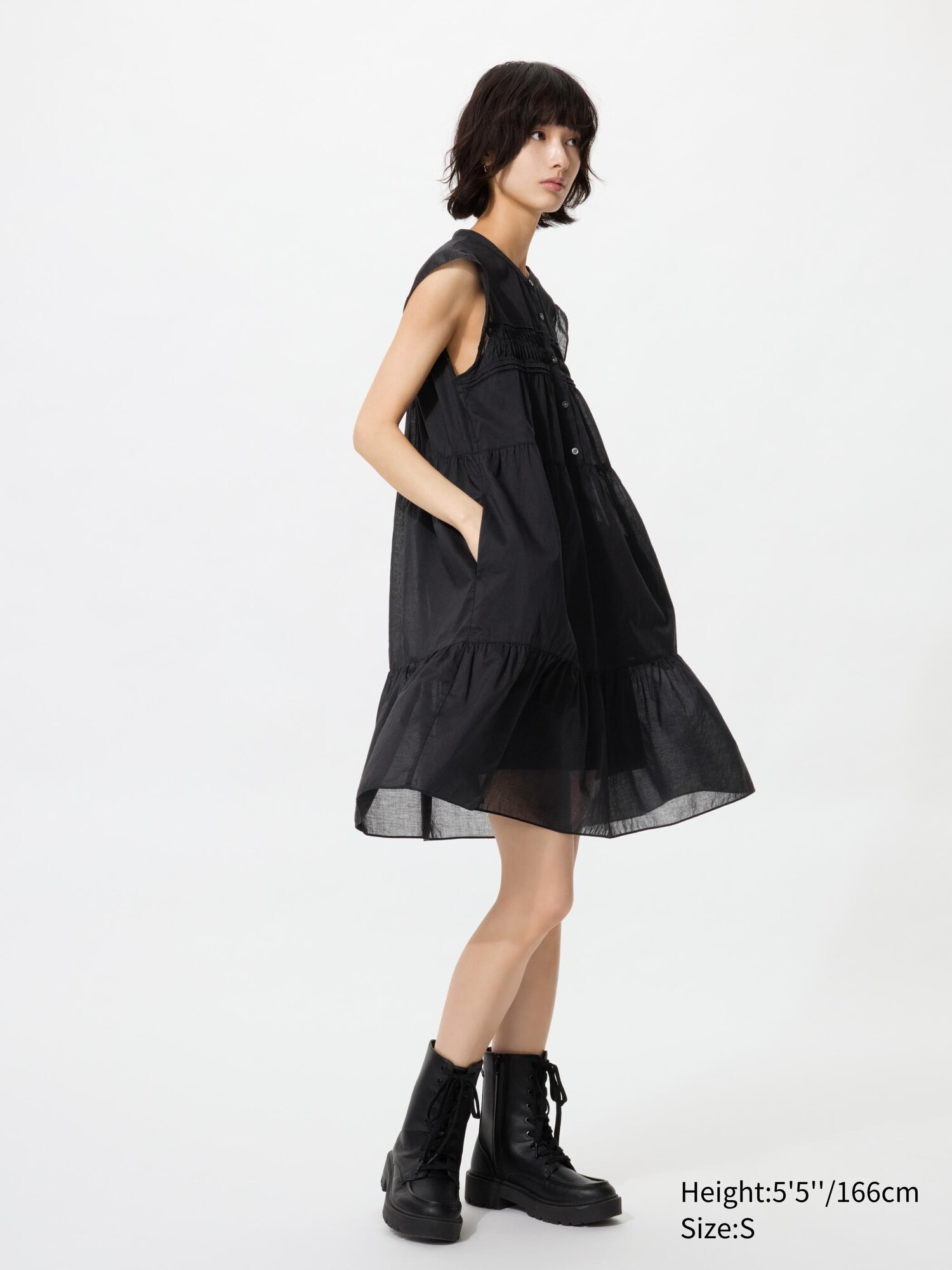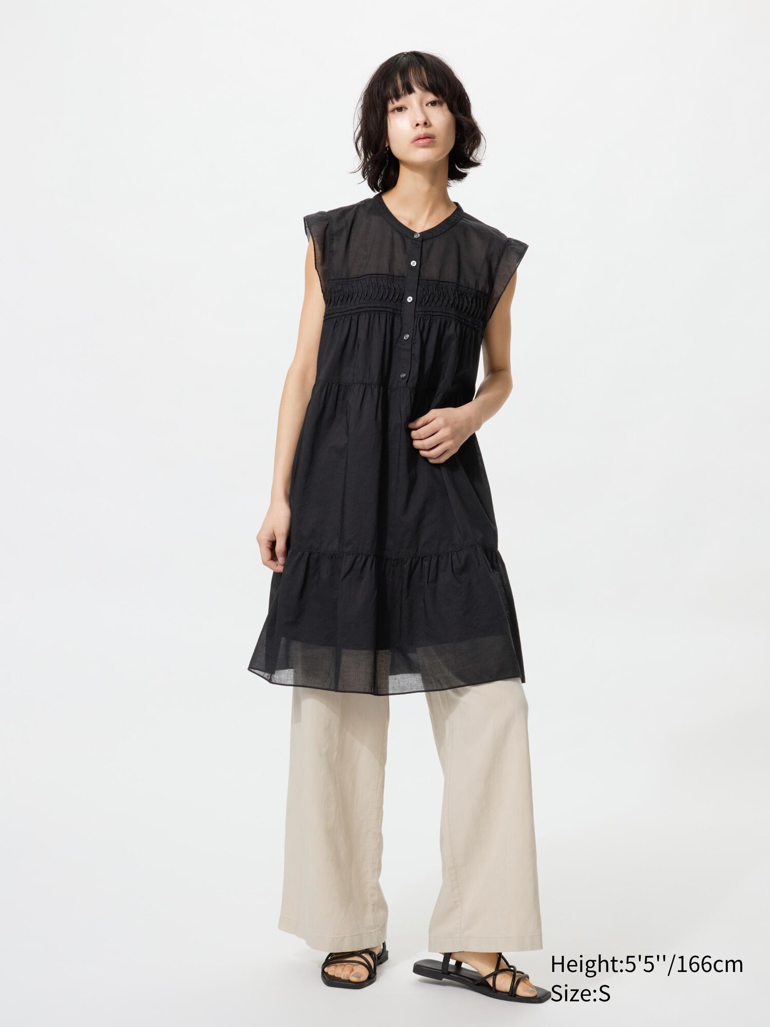 Хлопчатобумажное многоярусное платье (без рукавов)